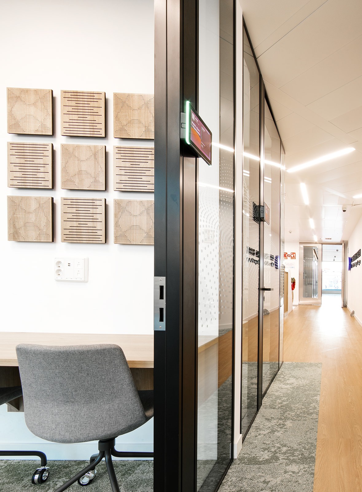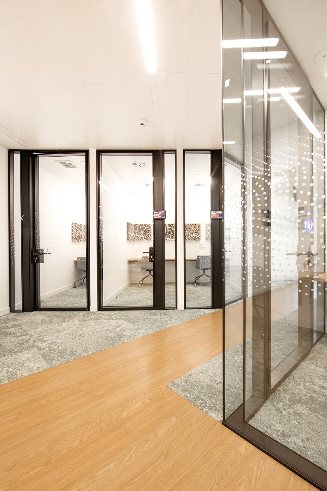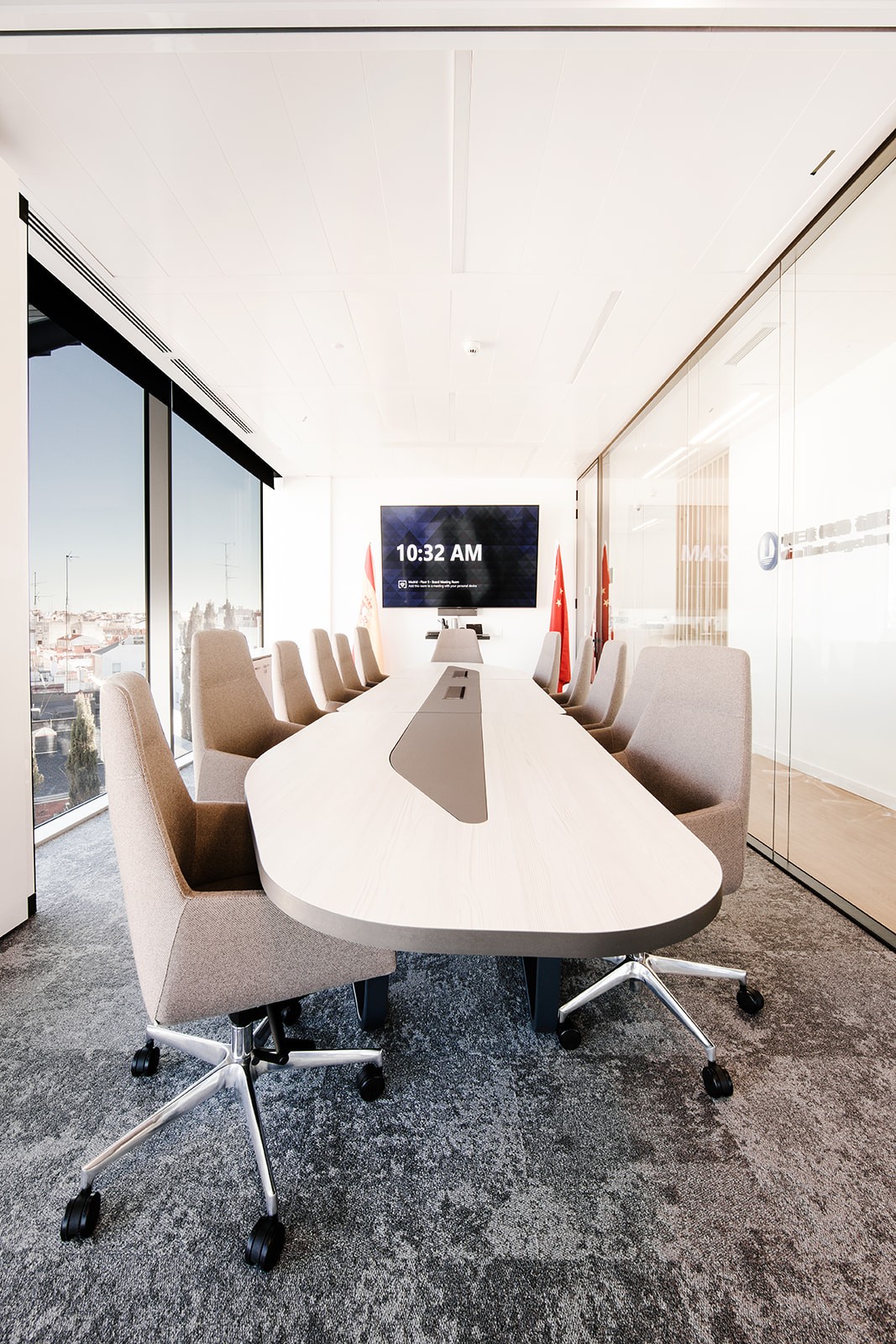 La propuesta se apoyó en una distribución eficiente y muy luminosa, con salas de reunión de carácter institucional, cerramientos acristalados que aportan transparencia y control acústico, y áreas comunes pensadas para el equipo como comedor y zonas polivalentes con mobiliario funcional. A nivel de ejecución, cuidamos la coherencia entre acabados, carpinterías y soluciones técnicas para mantener un lenguaje sobrio y contemporáneo en todo el conjunto. El resultado es una oficina preparada para operar desde el primer día, entregada en 17 semanas con coordinación total entre diseño, licencias y obra.