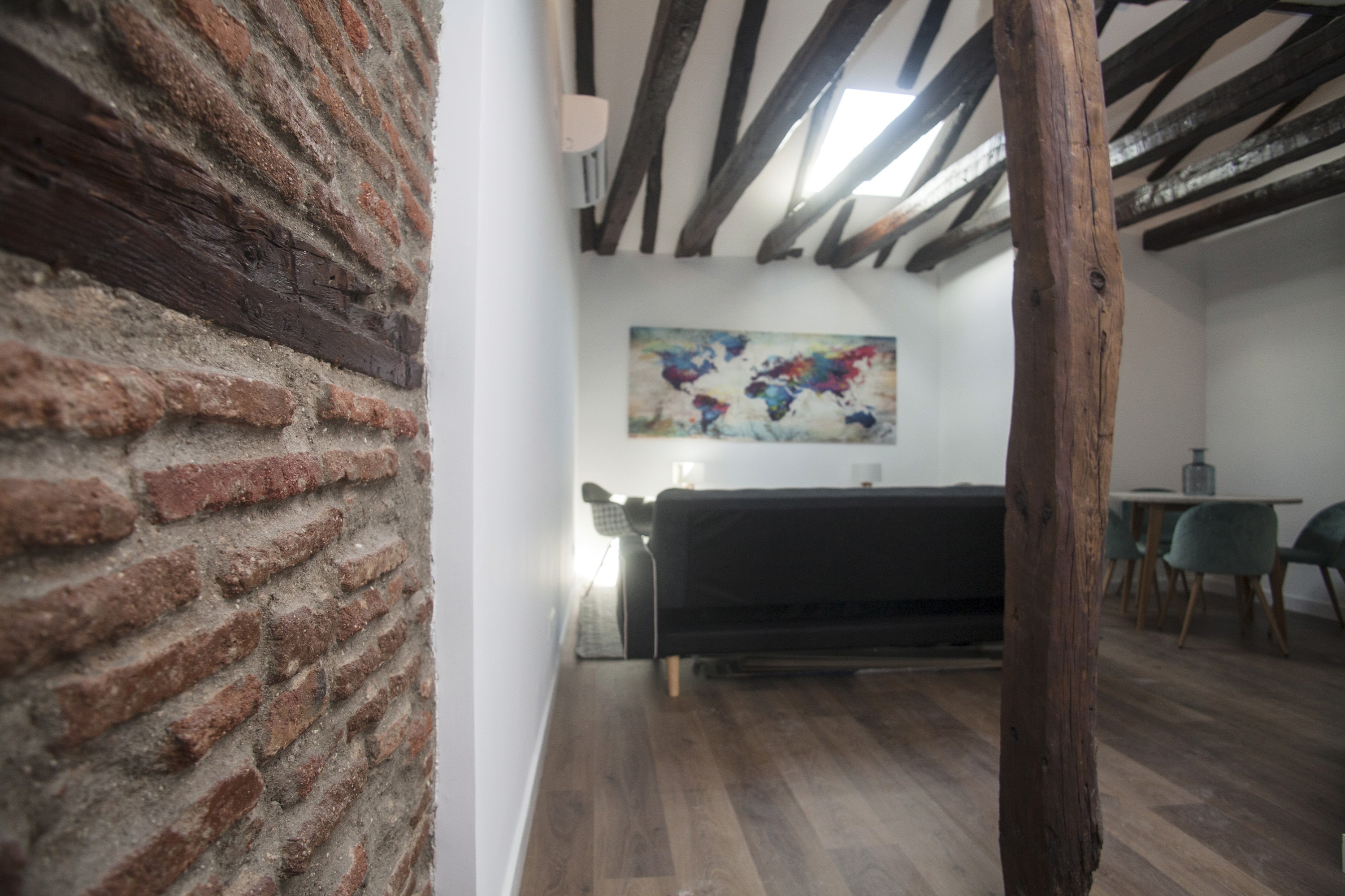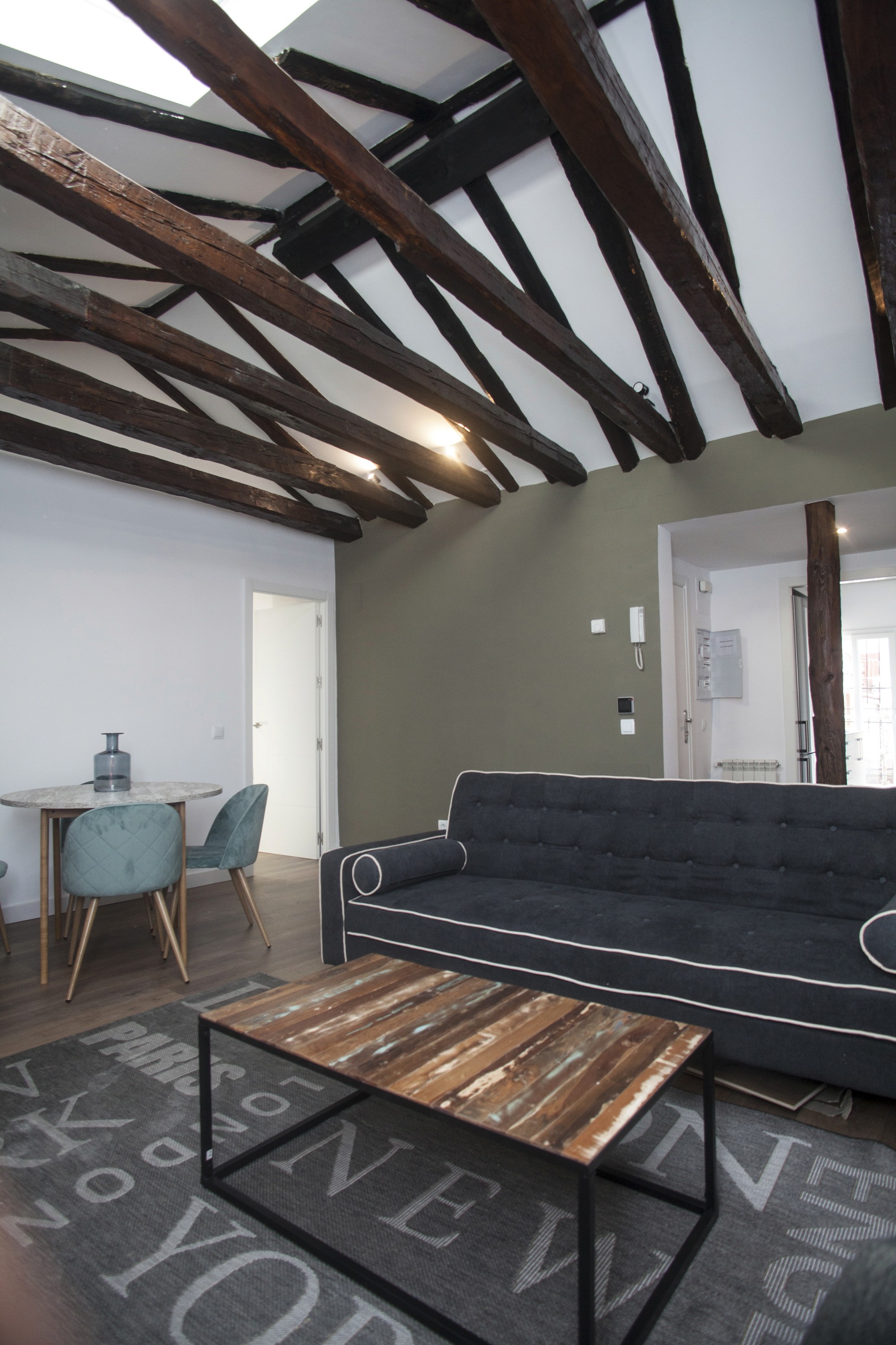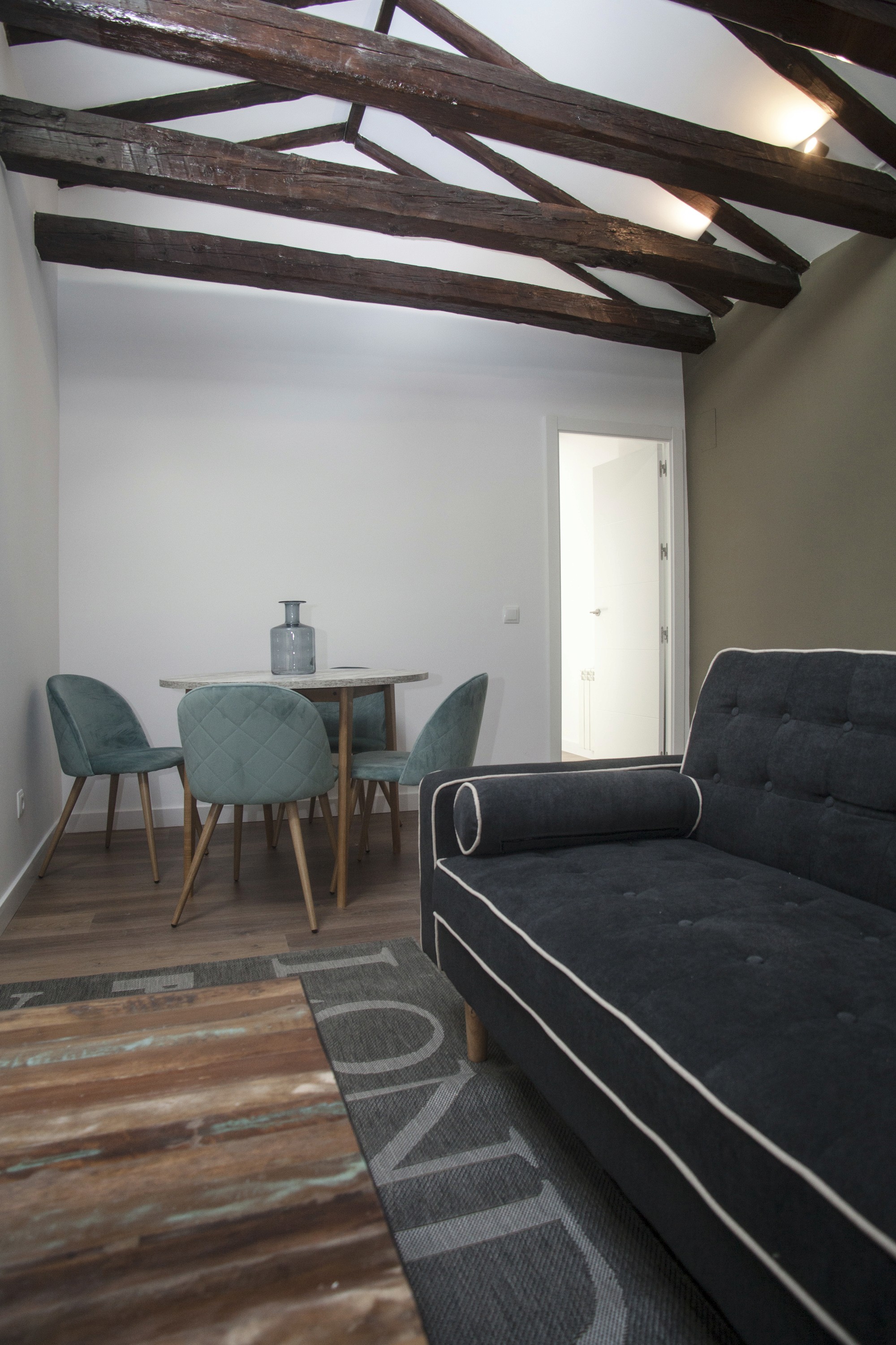 En Correo 2 desarrollamos un proyecto completo, de principio a fin, para renovar una vivienda de 45 m² en Madrid con un enfoque llave en mano. Unimos diseño, licencias, coordinación de Seguridad y Salud, apertura de centro de trabajo y ejecución de obra en un único proceso, para que todo avanzara con orden y sin fricciones. La intervención puso en valor el carácter original del espacio, destacando la estructura de vigas de madera en techo, y equilibrándolo con una estética más contemporánea y funcional. El resultado es un interior cálido y coherente, donde lo clásico y lo actual conviven de forma natural, listo para entrar a vivir. La obra se completó en 7 semanas, con control de plazos y una entrega final cuidada.