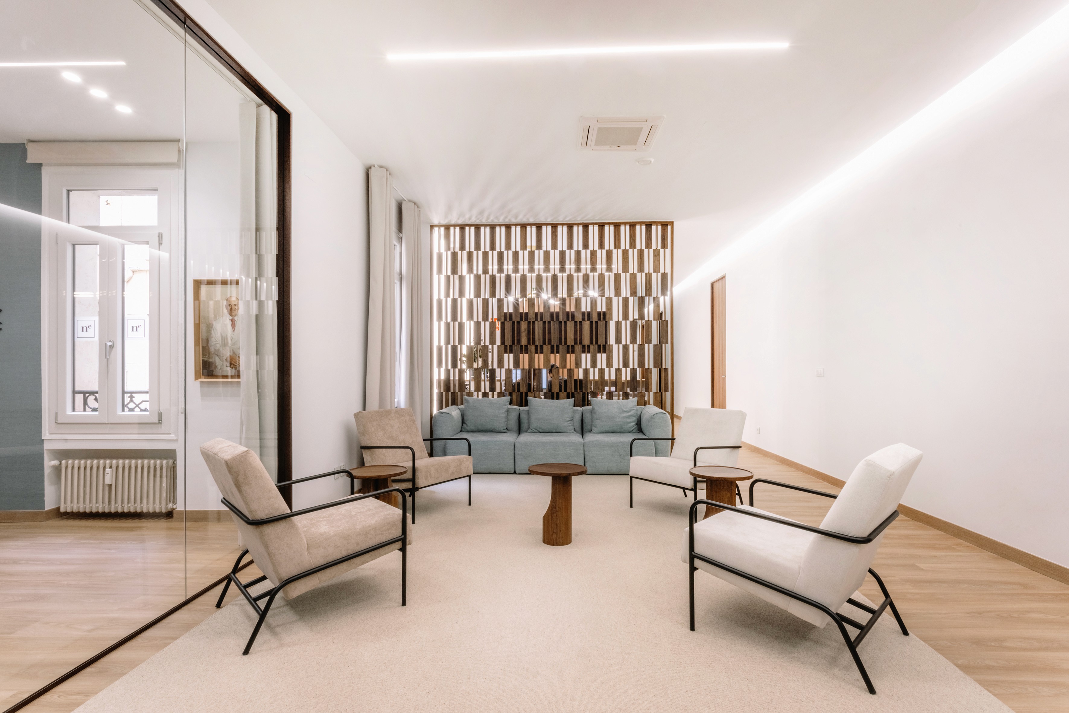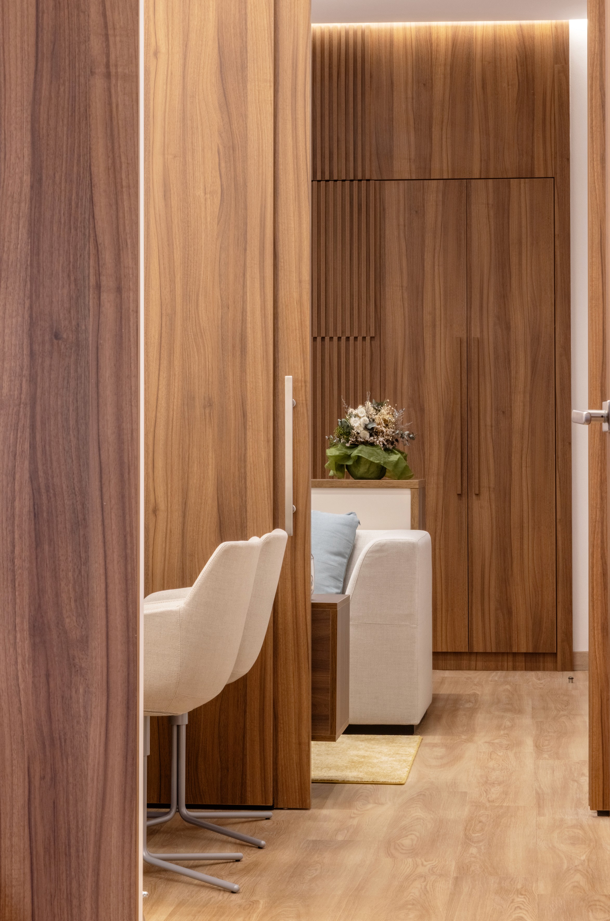 Desarrollamos un proyecto completo que integró el diseño del espacio, la gestión de licencias y la tramitación de la licencia sanitaria necesaria para la actividad de la clínica. Asumimos la coordinación de seguridad y salud, así como la apertura del centro de trabajo, dentro de un proceso altamente regulado y gestionado con precisión. Ejecutamos la construcción llave en mano siguiendo un plan detallado que garantizó un resultado seguro, eficiente y plenamente adaptado a los requerimientos sanitarios. Cada fase se trabajó con una visión global y un enfoque técnico riguroso para asegurar calidad y coherencia en todo el proyecto. El resultado es una clínica contemporánea, funcional y equipada para ofrecer una experiencia sanitaria de primer nivel.