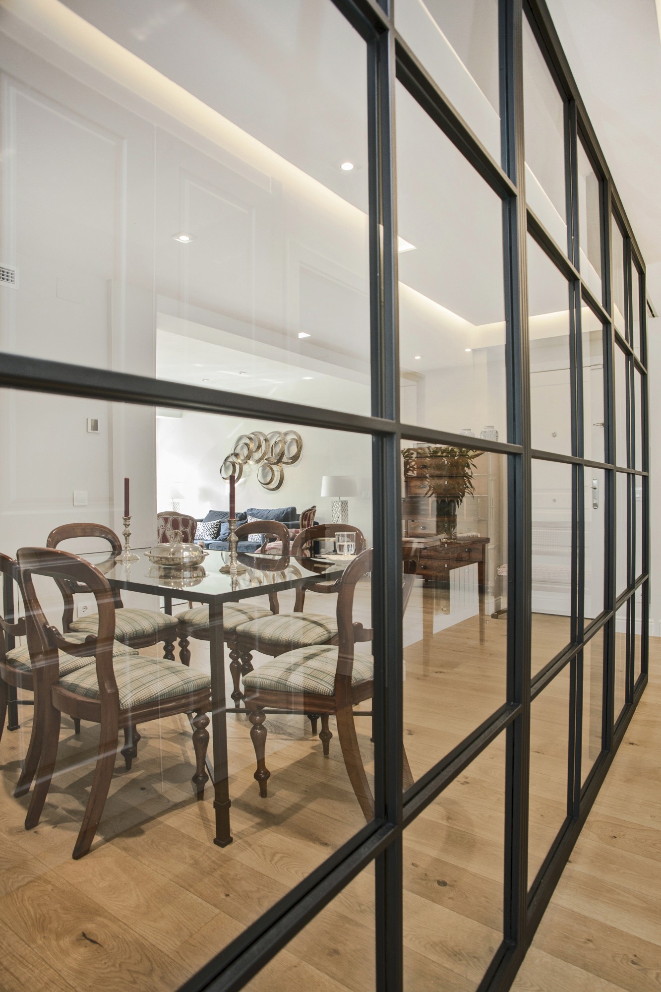 El resultado busca equilibrio entre amplitud, luz y calidez, combinando soluciones contemporáneas con elementos de carácter. Destaca la integración de una gran librería a medida en blanco, que ordena el espacio y aporta una presencia limpia y continua, y la separación con carpintería acristalada tipo industrial, que permite sectorizar sin perder transparencia ni luminosidad. La elección de textiles, mobiliario y piezas con personalidad refuerza un ambiente acogedor y vivido, manteniendo una estética cuidada y coherente en todo el conjunto.